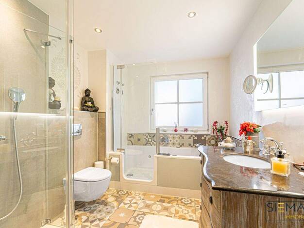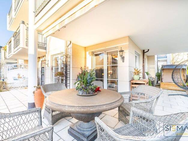 Willkommen in dieser eleganten Gartenwohnung, die modernes Wohnen, perfekte Ausstattung und großzügige Raumgestaltung vereint. Die elegante 5-Zimmer-Wohnung mit Lift erstreckt sich über das Erdgescho...