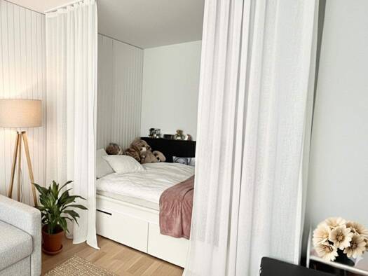 Unverbaubarer Grünblick, maximale Ruhe - dein smart geschnittenes City-Refugium im 1. OG wartet. Dieses 1-Zimmer-Apartment nutzt jeden Quadratmeter clever: eine gemütliche Schlafnische, dazu ein Wohn...