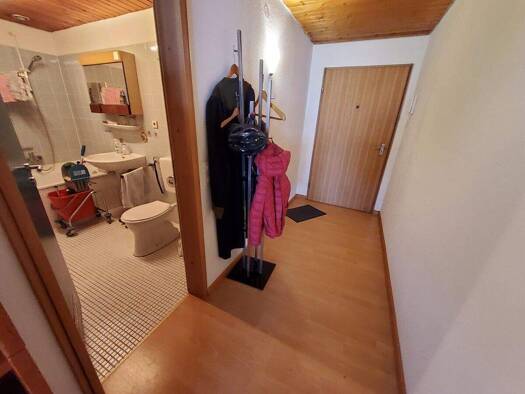 Beim Betreten der Wohnung gelangen Sie in einen großzügigen Flur, der viel Platz bietet – ideal für Einbauschränke und Stauraum, sodass Sie alles ordentlich verstauen können. Auf der unteren Ebene be...