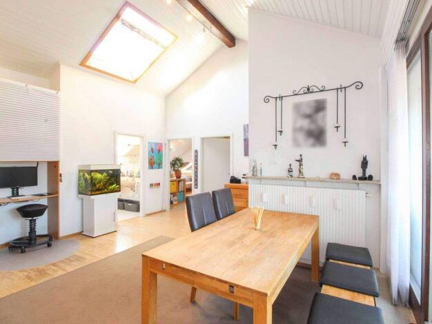 Diese charmante, sonnige 3-Zimmer-Wohnung liegt im Dachgeschoss eines gepflegten Wohnensembles aus dem Jahr 1993. Der offene, helle Wohn- und Essbereich mit Zugang zur großzügigen Dachterrasse ist mi...