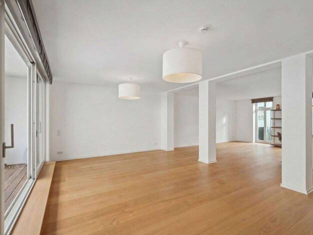 . Großzügiger ca. 102,50 m² Wohn-/ Essbereich . SieMatic Einbauküche . Exzellente Lichtverhältnisse . Empore mit Zugang zu der Terrasse . Kleiner Lift von der Küche in die Empore . Zwei Schlafzimmer ...