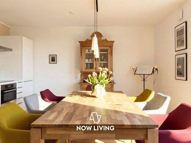 Hohe, lichtdurchflutete Räume schenken Weite, Energie und Atelier-Charakter. Hier blühen Ideen, Lachen und Leben auf. Direkt vor der Terrasse erstreckt sich der Garten, in dem Kinder toben, Haustiere...