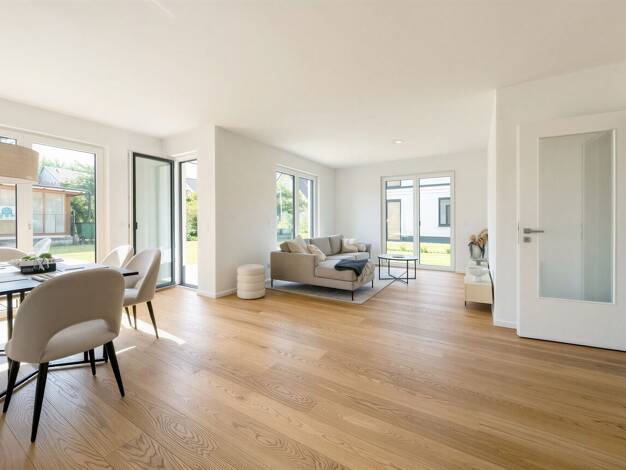 Diese charmante Erdgeschosswohnung in Haus 4 bietet modernes Wohnen mit viel Licht und Privatsphäre. Der offene Wohn- und Essbereich mit großzügiger Fensterfront ist nach Osten und Süden ausgerichtet...