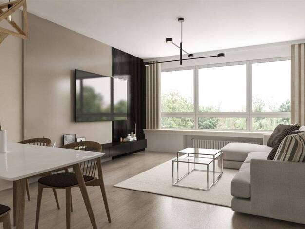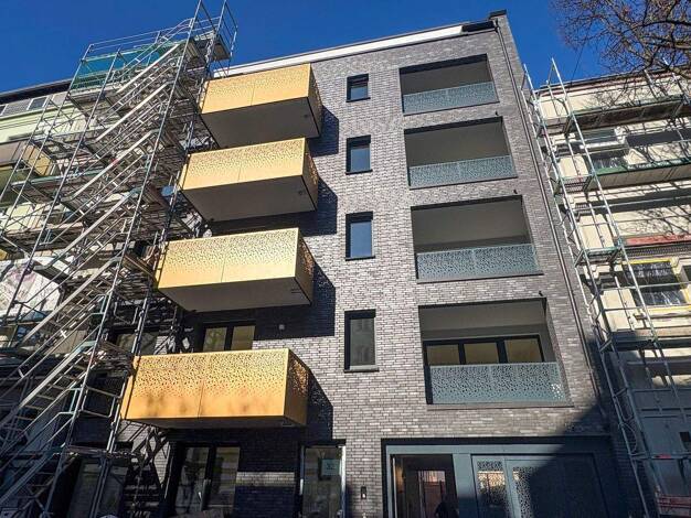 Diese Stadtwohnung vereint moderne Architektur mit funktionalem Design. Die Fassade zeigt eine stilvolle Kombination aus dunklem Ziegelstein und elegant gestalteten Balkonen, die für ein harmonisches...