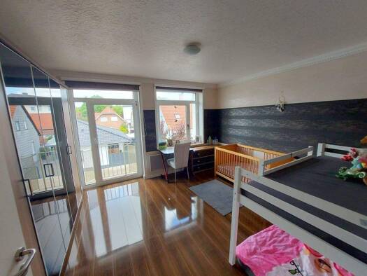 Diese charmante Wohnung bietet auf 77,5 m² eine ideale Wohnfläche für junge Familien. Beim Betreten der Wohnung empfängt Sie ein einladender Flur, der ausreichend Platz für Garderobe und Stauraum bie...