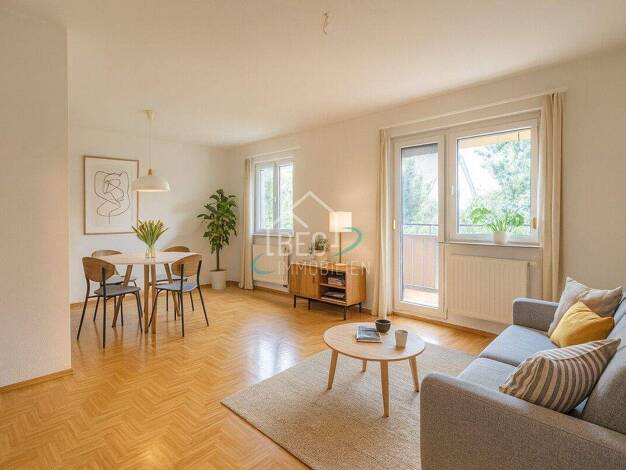 Diese gepflegte 3,5-Zimmer-Wohnung überzeugt durch ein durchdachtes Raumkonzept und einen großzügigen Außenbereich. Der Eingang führt in einen Flur mit praktischem Einbauschrank, der nahtlos in den o...