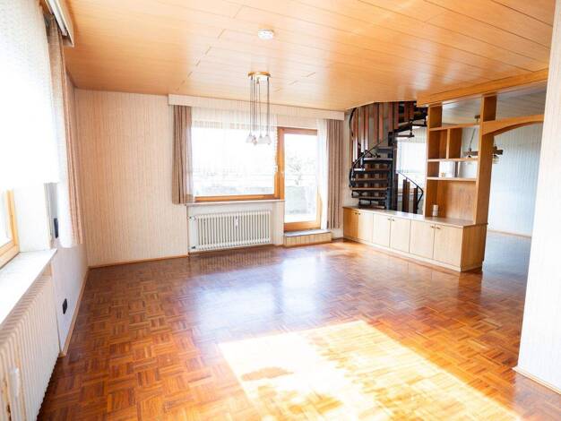 Diese moderne Maisonette-Eigentumswohnung in Bad Dürrheim, Oberbaldingen wurde 1994 kernsaniert. Das Ursprungsbaujahr des Hauses ist ca. 1900. Zwei übereinander liegende Wohnungen wurden zu einer ger...
