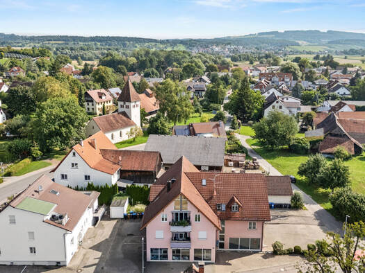 Die Wohnung befindet sich am Ortsrand von Bermatingen in ruhiger Lage in einem 2-Familienhaus. Das Gebäude umfasst die Eigentümergemeinschaft mit insgesamt 18 Wohnungen.