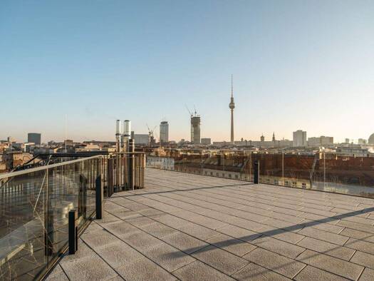 Entdecken Sie dieses moderne Studio im obersten Stock eines zweigeschössigen Townhouse in Berlin-Mitte mit eigener Dachterrasse. Genießen Sie absolute Privatsphäre und den unverbaubaren Blick von Ihr...