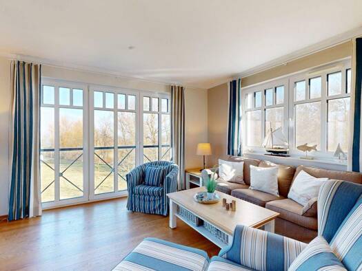 Moderne Eigentumswohnung zur Ferienvermietung und/oder Selbstnutzung Diese moderne 2-Zimmer-Eigentumswohnung befindet sich in der renommierten Villa Deichgraf in Börgerende, einem architektonisch hoc...
