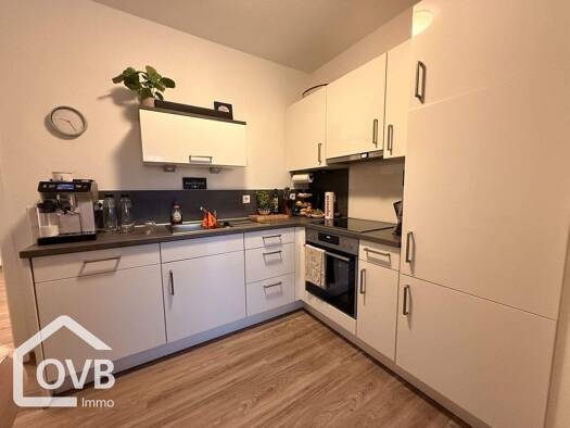 Diese derzeit vermietete, helle und neuwertige Wohnung im 1. Obergeschoss verfügt über einen großen Wohn-/Ess-/Kochbereich, ein Schlafzimmer, ein Gäste-WC, einen Flur, ein Bad, einen HWR und einen Ab...