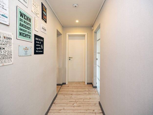Der erste Eindruck führt unmittelbar in eine Atmosphäre von Wärme und Ruhe. Der eigene Eingang, der geschützte Balkon mit Markise und der private Garten formen einen persönlichen Rückzugsort, der Geb...