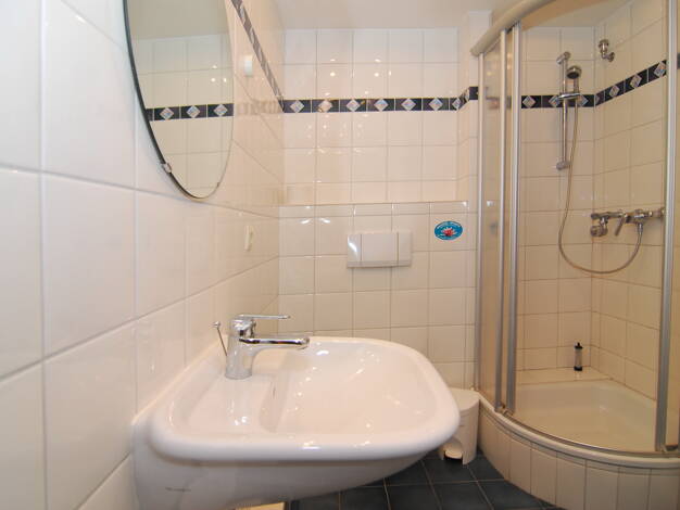 Die Wohnung besteht im 2. Obergeschoss/Dachgeschoss aus Flur, Duschbad mit WC, Wohnschlafzimmer, Kochnische und einem Balkon sowie 2 Abstellräumen. Der große Balkon ist nach Süden ausgerichtet