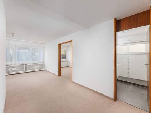 Helle, freundlich geschnittene Wohnung mit offenem Essbereich und Blick in die Küche. Der Wohnraum bietet Zugang zu einem zusätzlichen Zimmer, ideal als Büro oder Kinderzimmer. Das Bad wurde 2018 mod...