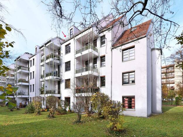 In zweiter Reihe, hinter einem gepflegten Vorderhaus gelegen, befindet sich diese außergewöhnliche Maisonettewohnung direkt gegenüber dem Agricolapark und damit eingebettet in den urbanen wie charman...