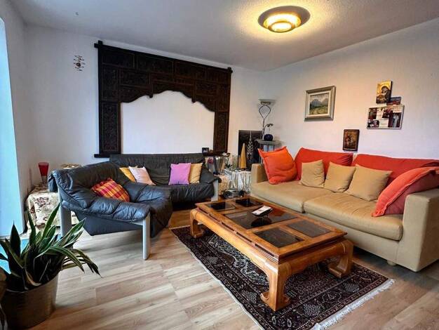 Die Erdgeschoss Wohnung befindet sich in einem 2 Parteien Haus, in einem ruhigen Ortsrand in grüner Umgebung. Die Terrasse mit angrenzendem Garten ist vom Wohnzimmer aus begehbar. Das geflieste Tages...