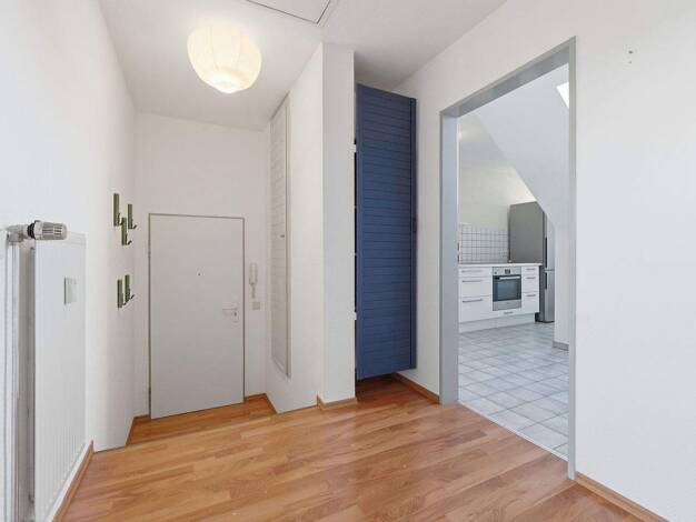 Diese charmante Dachgeschosswohnung überzeugt durch eine gelungene Kombination aus durchdachter Raumaufteilung, gemütlichem Wohnambiente und praktischen Zusatzflächen. Auf ca. 60,36 m² Wohnfläche ver...