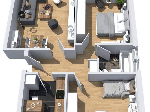 - Wohnflächen: Wohnungen haben typischerweise eine Größe von 56 - 83 m².
