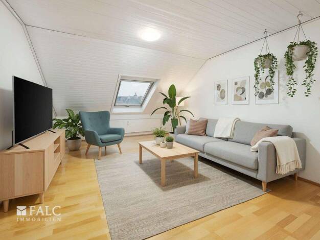 Diese moderne Dachgeschosswohnung mit ca. 67 m² Wohnfläche besticht durch ihre freundliche Atmosphäre und den besonderen Charakter eines Wohnens unter dem Dach. Die zwei hellen Zimmer bieten viel Rau...