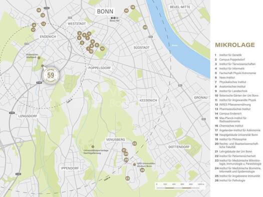 Die Stadt Bonn vereint historische Substanz mit moderner Urbanität. Der kulturelle Reichtum zeigt sich in Einrichtungen wie dem Beethoven-Haus, dem Bonner Kunstmuseum und dem Poppelsdorfer Schloss. Darüber hinaus bietet die Universität Bonn als renommierte Bildungseinrichtung Ausbildung auf höchstem Niveau.
