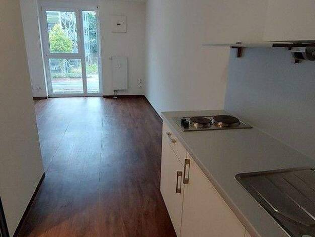 Das Apartment ist möbliert mit kleiner Küchenzeile, Bett und Schrank. Ein Bad (ohne Fenster) mit Dusche neutral weiss gefliest ist rechts neben den Eingang vorhanden. Ein Hausmeisterservice ist gegeb...