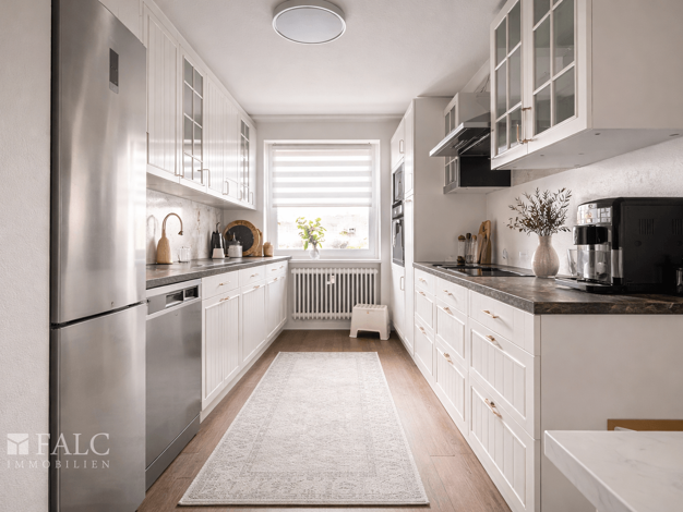 Das ist eine wirklich sehr schöne Wohnung. Zum Einen ist sie aufgrund der vielen Fensterflächen hell und lichtdurchflutet, zum Anderen ist sie für eine 4-Zimmer-Wohnung sehr schön aufgeteilt. Beispie...