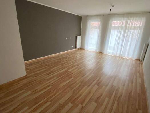 Helle 3-Zimmer-Eigentumswohnung mit Balkon im EG eines 5-Parteien-Mehrfamilienhaus; Weiße Kunststofffenster mit Außenrollos, Teppichböden, Parkettboden, Bad gefliest mit Fenster und Badewanne, Balkon...