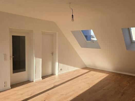 Objektbeschreibung Diese Penthouse-Wohnung im Dachgeschoss bietet ein außergewöhnlich großzügiges Wohngefühl mit einer beeindruckenden Deckenhöhe von bis zu 4,20 m, sichtbaren Holzbalken und großen D...