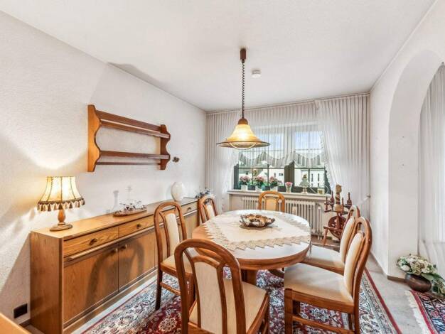Die Wohnanlage wurde 1974 errichtet und besteht aus drei Mehrfamilienhäusern mit gemeinsamer Tiefgarage. Die angebotene Wohnung liegt im ersten Obergeschoss und hat eine Wohnfläche von etwa 102 Quadr...