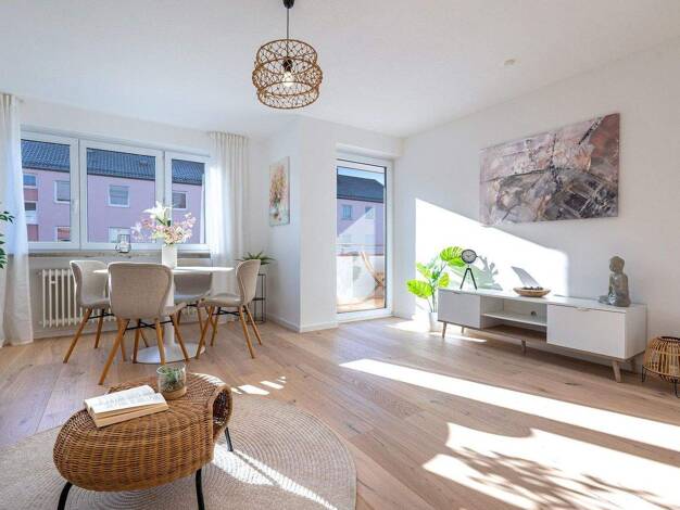 Diese hochwertig sanierte 4-Zimmer-Wohnung mit ca. 83,5 m² Wohnfläche befindet sich im 2. Obergeschoss eines gepflegten Mehrfamilienhauses in ruhiger Wohnlage von Königsbrunn. Die Wohnung überzeugt d...