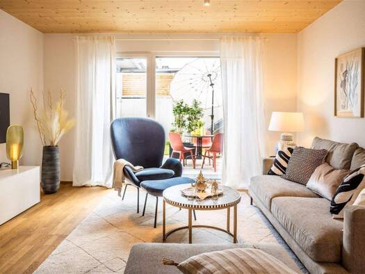 Außergewöhnliche 3,5-Zimmer-EG-Terrassenwohnung mit Haus-im-Haus-Charakter Diese hochwertig kernsanierte Terrassenwohnung bietet ein Wohngefühl wie im eigenen Haus. Drei separate Eingänge, ein direkt...