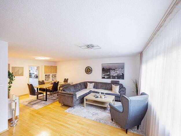 Beim Betreten dieser großzügigen 3,5 Zimmer Wohnung in Marbach am Neckar aus dem Baujahr 1965 stehen wir zunächst im zentralen Flur, der alle Räume miteinander verbindet und den Rundgang durch die ru...