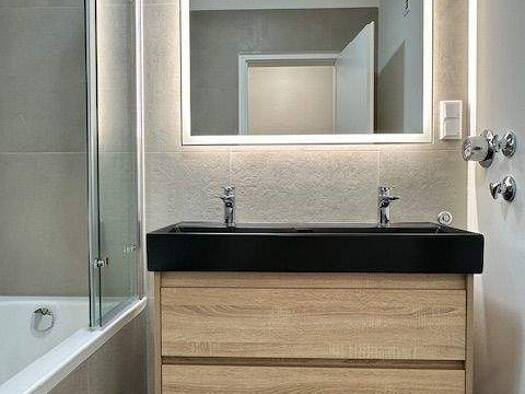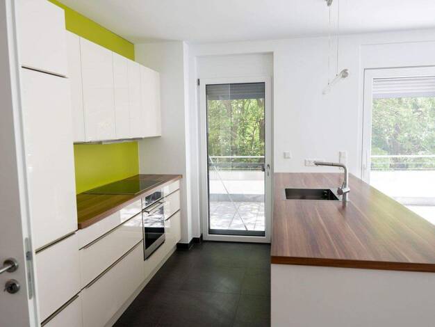 Wunderschöne helle sonnige Neubauwohnung modern mit großen Fenstern auch im großen Badezimmer mit Wanne und Dusche direkt am Wald. Schöne offen Einbauküche und Kamin im Wohnzimmer. Extra Gästetoilett...