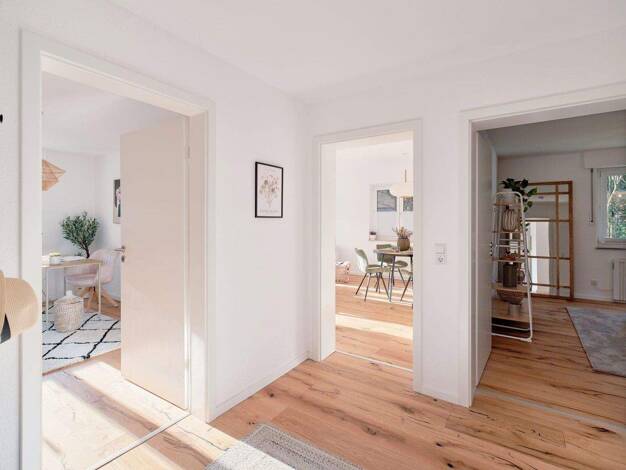 Diese 83 m² große Wohnung präsentiert sich als ein einladendes Zuhause mit viel Helligkeit und einer äußerst angenehmen Wohnatmosphäre. Der offen gestaltete Wohn-, Koch- und Essbereich wirkt großzügi...