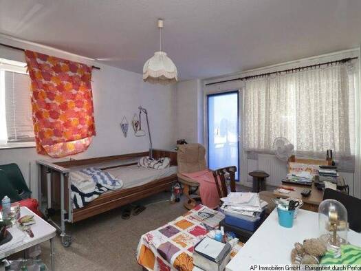 Objektbeschreibung Auf dem angelegten Gelände befinden sich 4 Mehrfamilienhäuser mit Grünanlage und Parkplätzen Raumaufteilung 1 heller Raum mit großem Fenster. Er bietet genug Platz für Schlafen, Es...