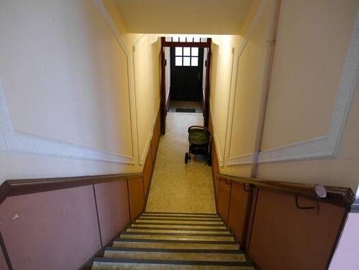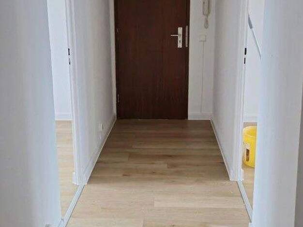 Vom Treppenhaus führt der Flur nach links ins Badezimmer oder geradeaus ins Wohnzimmer. Von diesem ist sowohl das Schlafzimmer, als auch die Küche erschlossen. Die Wohnung ist nicht WG geeignet.