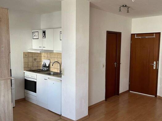 Objektbeschreibung Die 1 Zimmerwohnung ist mit einer offenen Kochnische ausgestattet und befindet sich in einem gepflegten, ruhigen Mehrfamilienhaus. Balkon / Laminatfußboden / Bad mit Wanne / Keller...