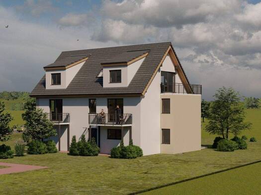 Auf dem nach Süden ausgerichteten Grundstück entsteht ein Haus mit 7 Wohnungen und 11 Stellplätzen im förderfähigen KfW-40 Standard. Im Erd- und Dachschoss befinden sich je zwei Wohnungen, im Oberges...