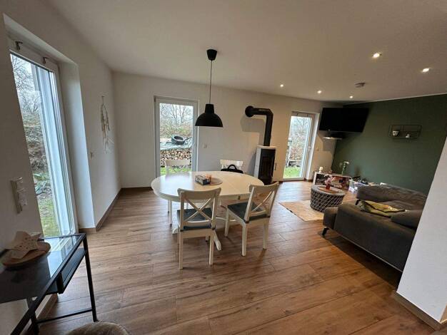 Objektbeschreibung Wohnung Nr. 02 (Haus 1b), Erdgeschoss, 129,67 m2 · hochwertiger Ausbau nach dem Gebäudeenergiegesetz ( GEG) · 3 fach Wärmeschutzverglasung · Warme Wasser Luft Heizsystem mit Warmwa...