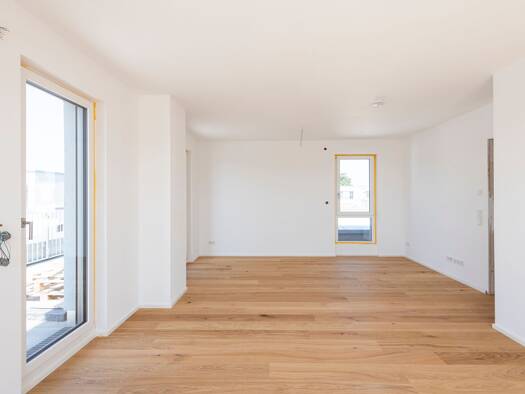 Mit 103,67 m² ist dieses Penthouse zwar das kleinere der beiden im Wohnquartier Hemhofen Zeckern – doch auch hier handelt es sich zweifellos um ein echtes Gusto Stück. Im Kontrast zu der sehr offenen...