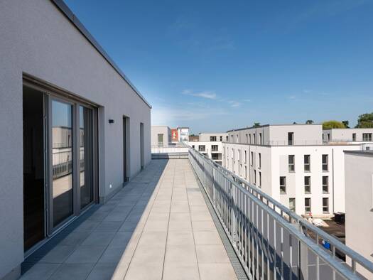 Das Gusto Stück des Wohnquartiers Hemhofen-Zeckern: die repräsentative Dachterrassenwohnung im Staffelgeschoss mit 130,425 m² Wohnfläche. Sobald man das erste mal auf der großzügigen Dachterrasse (64...