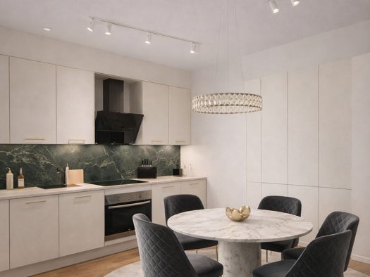 Diese Penthousewohnung wurde bis ins Detail als eleganter Rückzugsort konzipiert und dabei ein eigenes Universum geschaffen. Moderne Ausstattungselemente und ein durchdachter Grundriss harmonieren au...