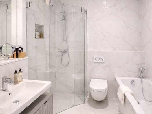Diese exquisite Maisonettwohnung wurde bis ins Detail als eleganter Rückzugsort konzipiert. Fast alle Fenster sind bodentief und ermöglichen einen angenehmen Weitblick über die Dächer der Nachbarscha...