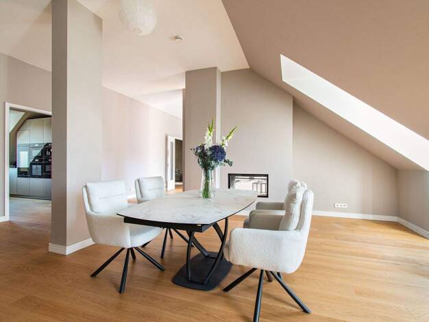 Penthouse mit Dachterrasse - Wohnen über zwei Ebenen in Bestlage Dieses Maisonette-Penthouse entstand 2024 im Rahmen des hochwertigen Dachgeschossausbaus des denkmalgeschützten Jugendstilgebäudes und...