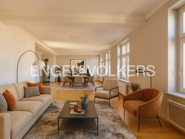 Dieses Penthouse präsentiert sich als harmonisches Ensemble aus Tradition und zeitgemäßer Architektur und fügt sich elegant in das historische Umfeld ein. Hier trifft moderne Perfektion auf die Ästhe...