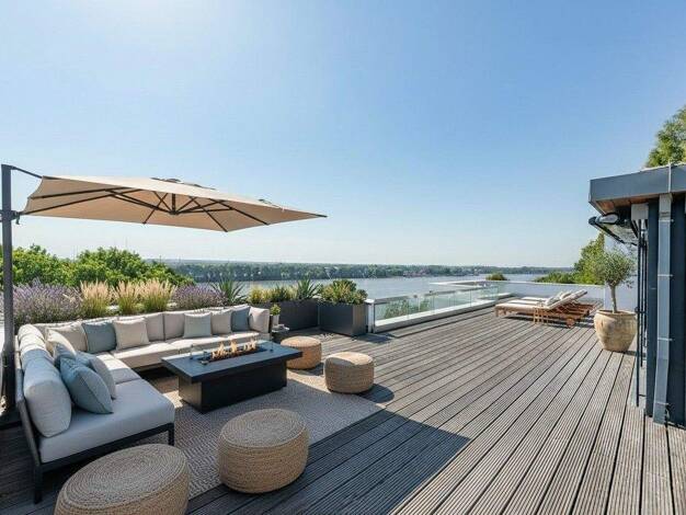 Prolog: Um zu zeigen, wie die Einrichtung dieses Penthouses ohne viel Aufwand geändert werden kann, sind Fotos mit KI gestaged und dementsprechend gekennzeichnet. Wenn Sie auf den Terrassen dieser ex...