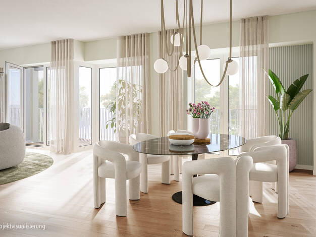 In der obersten, 6. Etage gelegen, entfaltet diese Wohnung eine Qualität, die sich nicht inszenieren lässt - sie ergibt sich aus ihrer Position: Höhe, Ruhe und ein freier, unverbaubarer Blick über da...