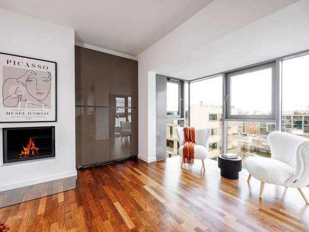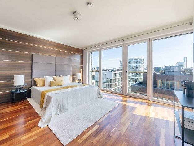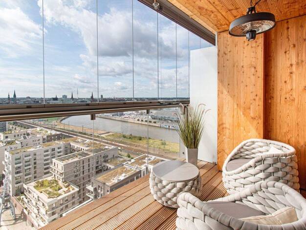 Das Penthouse besticht durch seine imposanten Blickachsen auf die Elbe, den Sandtorhafen sowie die Elbphilharmonie. Ein weiteres Highlight ist die exklusive alleinlage auf der Endetage.