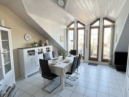 Das Loft-Apartment. Der offen gestaltete Wohn- und Essbereich bildet gemeinsam mit der Galerie das architektonische Zentrum der Wohnung. Großzügige, bodentiefe Fensterflächen im Wohnbereich sorgen fü...
