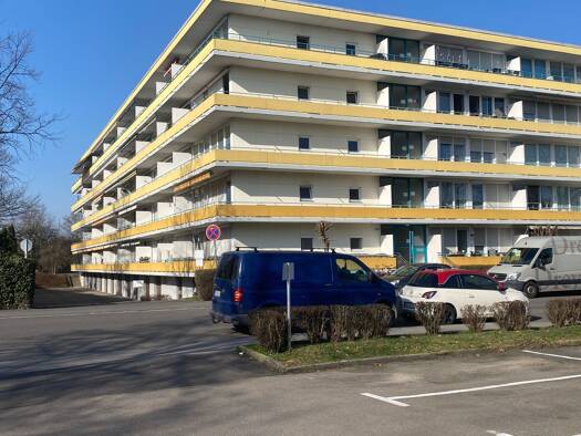 60 qm, Baujahr 1973, Massivbauweise, 6,5 qm Loggia mit Markise, Abstellraum, teilrenoviert: Öl-Zentralheizung Einbau ca. 1998, Kunststofffenster mit Isolierverglasung ca. 2000, Bad mit bodengleicher ...